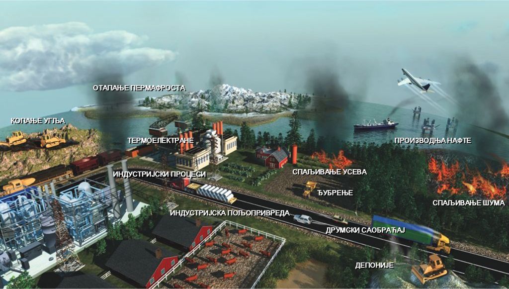 Људске активности, пре свега сагоревање фосилних горива, су главни узрок промена климе које је забележено у другој половини прошлог и почетком овог века. [i]